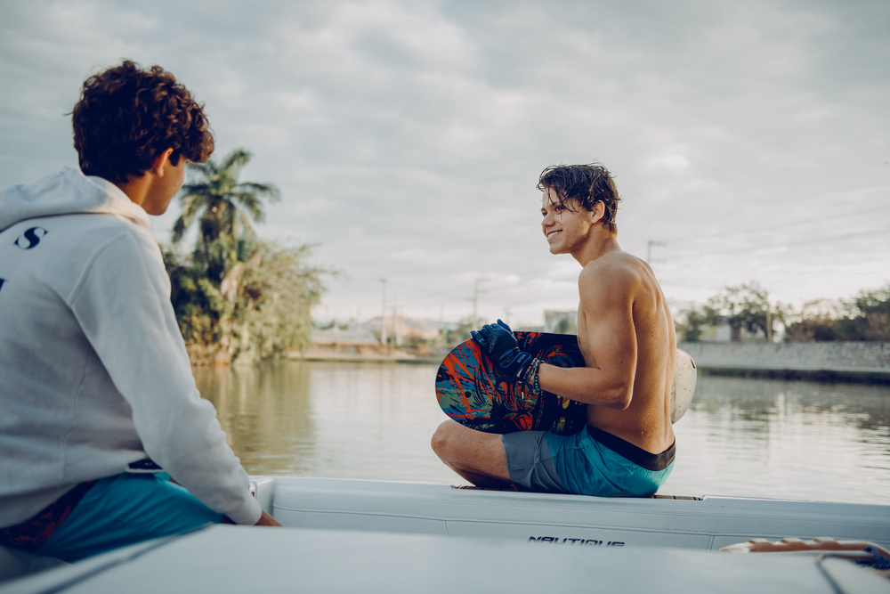 Sergio, su papá, estuvo clasificado en el Top 10 del mundo en figuras (tricks) y Aline, su mamá, sigue esquiando y compitiendo en slalom.
